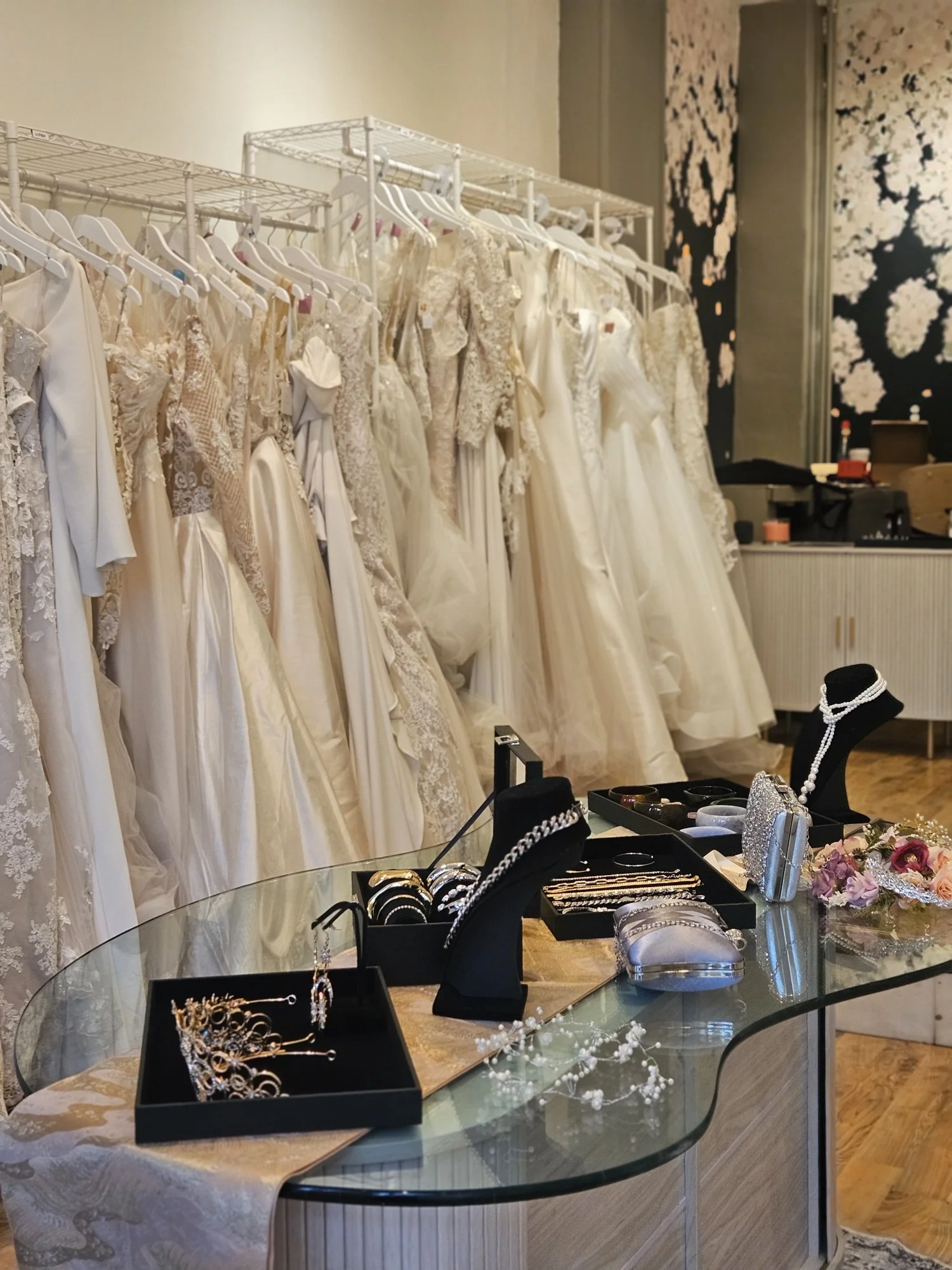 We welcome walk-ins during our regular business hours, where our experienced bridal stylists are available to guide you as you explore the current selection. If you can’t make it during open hours, feel free to text or email us to arrange a visit.